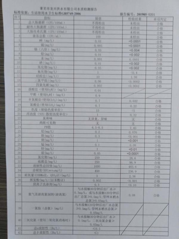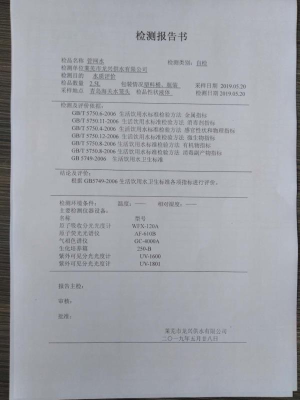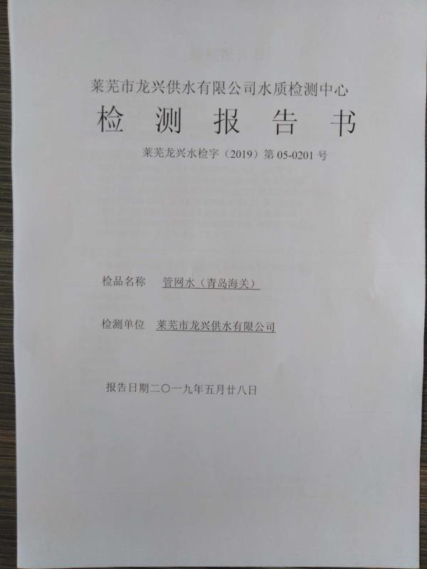 青島海關管網水龍頭水質檢測報告