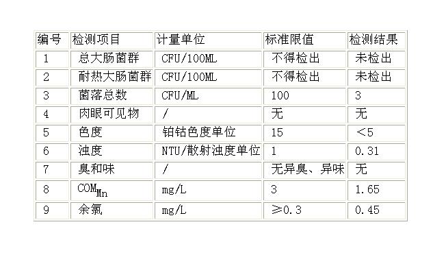 樣品名稱:出廠水 樣品狀態:正常 采樣人員:王娟